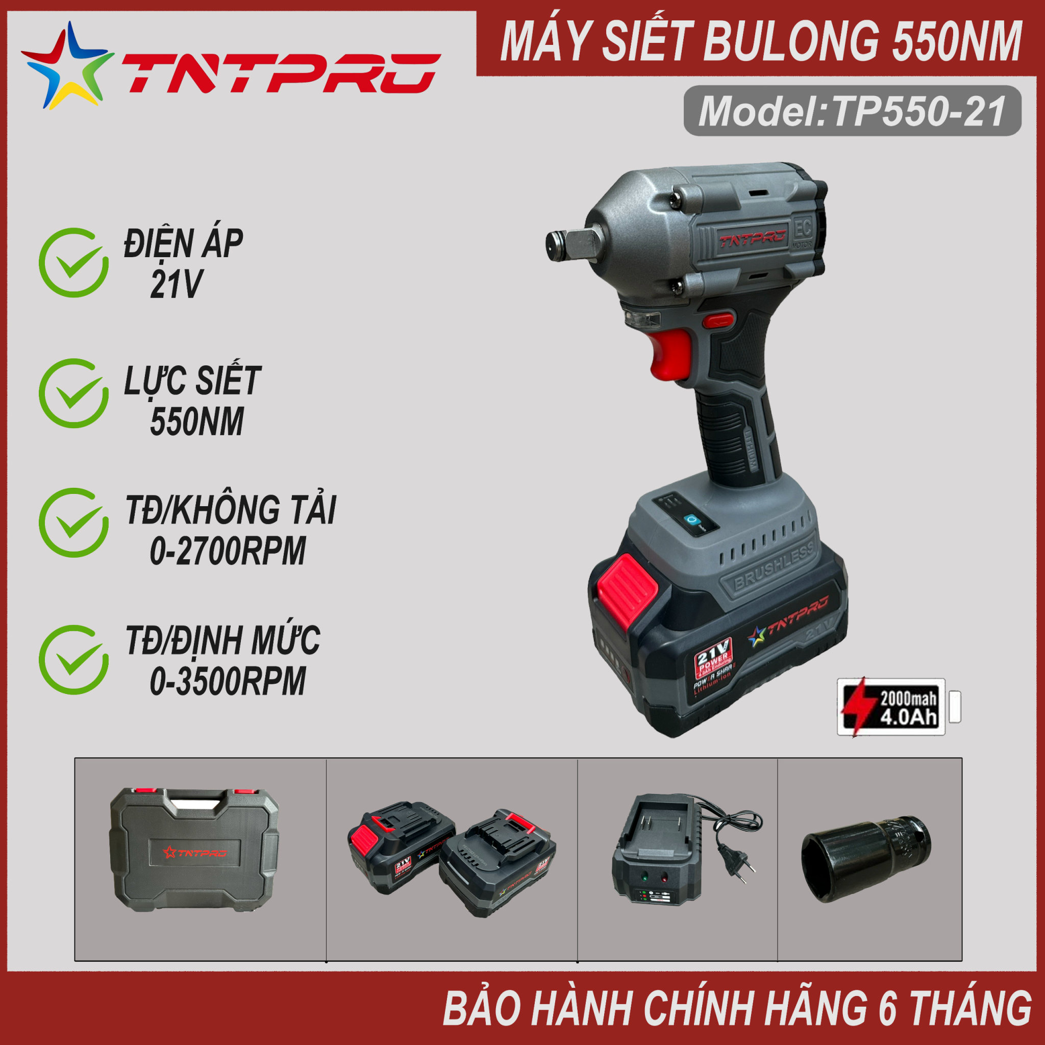 Máy bắt ốc pin 21V TNT Pro TP550-21